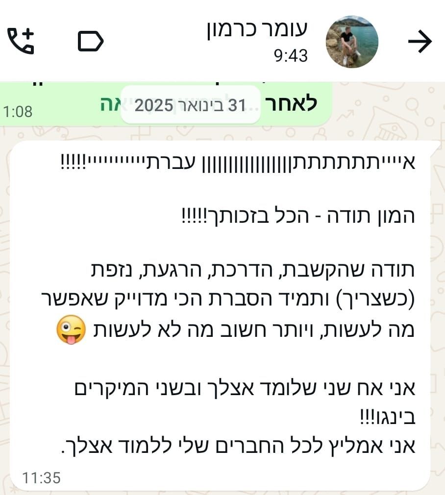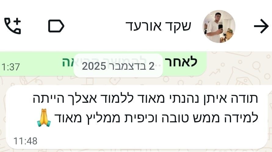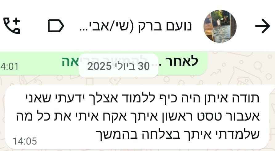 תהליך הלימוד הינו חוויתי ובאווירה נעימה ומקצועית