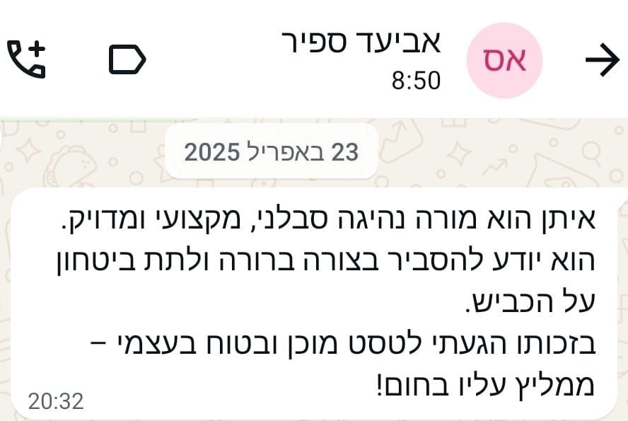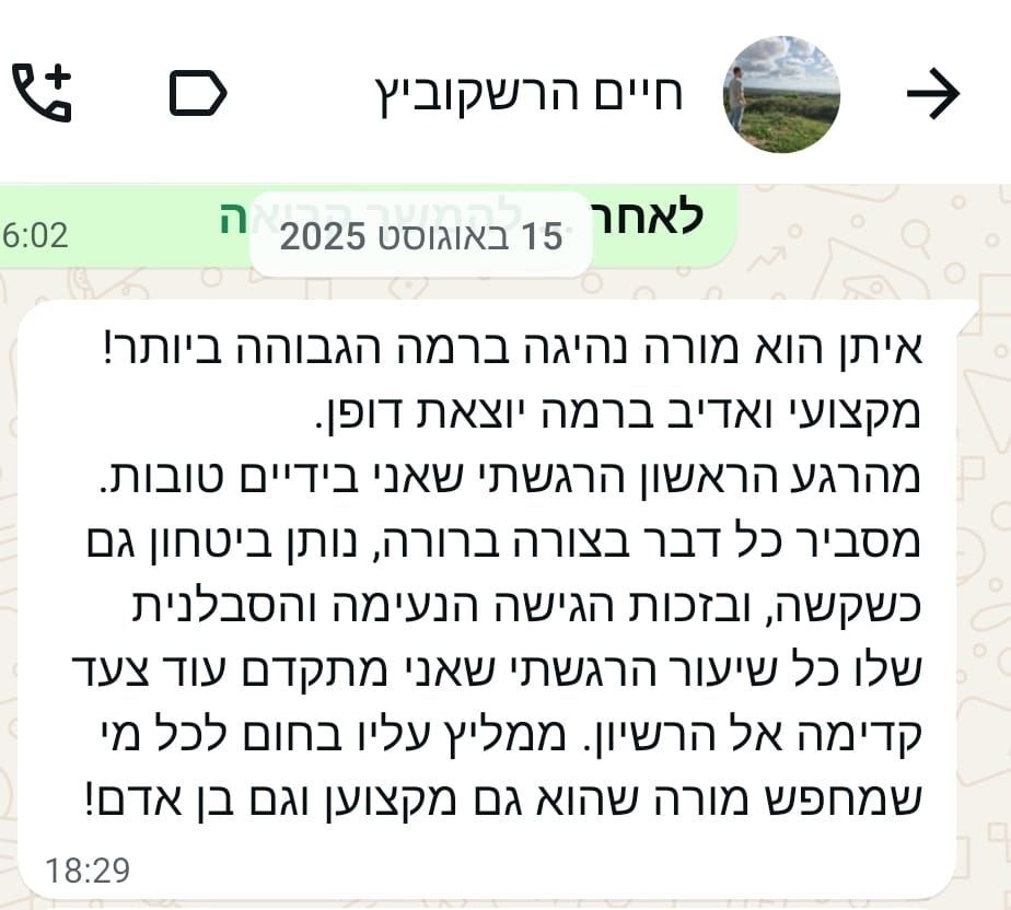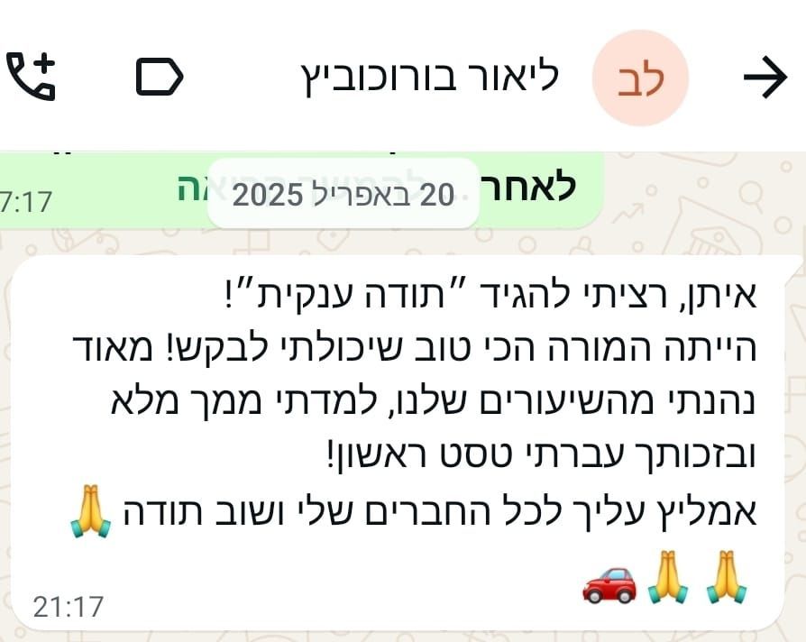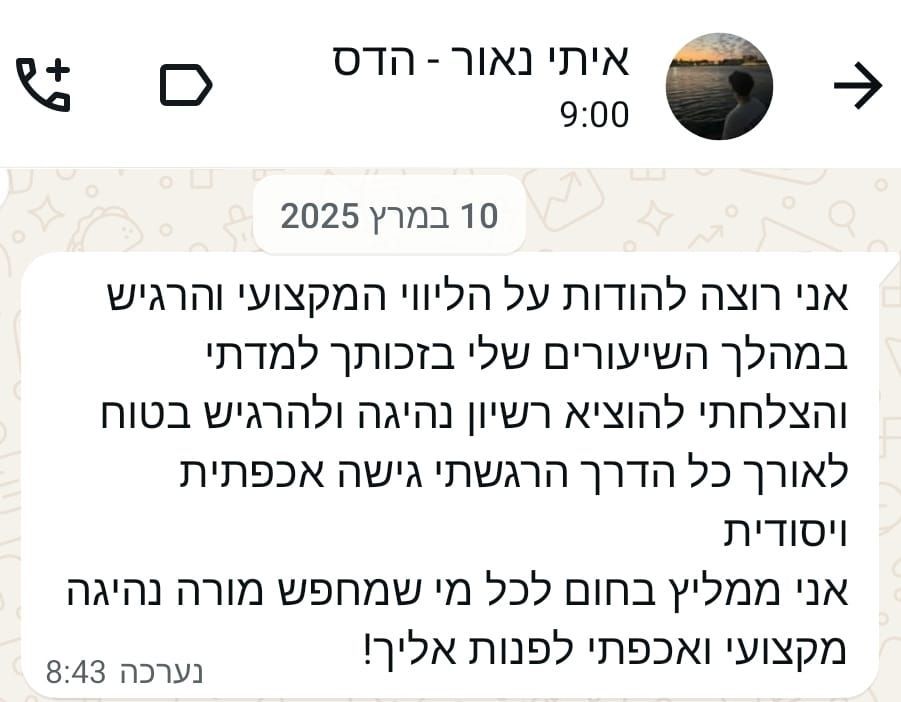 ומאז ועד היום, אני מורה נהיגה פעיל ושותף בבית ספר לנהיגה "מודיעין"