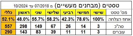 הטבלה הבאה מציגה סטטיסטיקה רב שנתית של אחוזי מעבר המבחן המעשי (טסט) אצלי